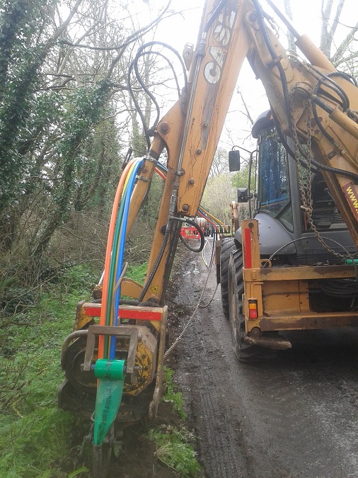 We install fibre optic broadband ducting networks fast our fastest yet has been 7500m in one working day! We can lay multiple ducting with warning tape on roadside verge with minimal disturbance to traffic or the environment with the leased traffic management hire. It's the most efficient method!